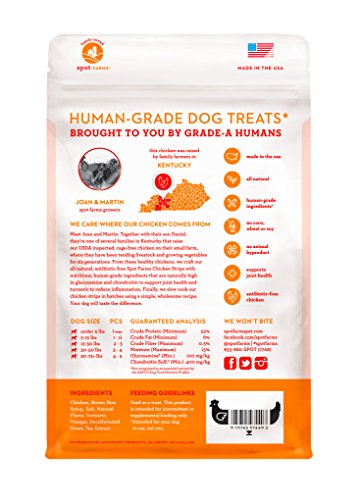 We craft our all-natural Spot Farms Chicken Strips with nutritious, human grade ingredients that are naturally high in glucosamine and chondroitin to support joint health. We slow cook our chicken strips in batches using simple, wholesome recipes. Easy to break into smaller pieces, these delicious treats are great for training!